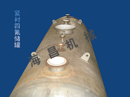 緊襯四氟是相對于我國目前大量采用的松襯工藝而言的,所謂松襯就是襯里四氟板與鋼體之間完全脫離,是兩個相對獨立的部分,在四氟板受到罐內(nèi)液體壓力時,四氟板就會拉伸后與鋼體靠住,從而靠鋼體承受液體壓力。松襯在大型設(shè)備時必須要分段,加法蘭聯(lián)接,這樣設(shè)備將會增加多個法蘭,產(chǎn)生多個密封面,由于設(shè)備大而法蘭的平整度就會大大降低,因此在溫度變化時,聯(lián)接法蘭就會變形,聯(lián)接法蘭的螺栓就會受力不同,從而導(dǎo)致螺栓松動,出現(xiàn)泄露,這樣就必須更換墊片,重新聯(lián)接。隨著時間的推移,每次更換墊片的周期會越來越短,這對大型儲罐將是致命的。其次隨著罐內(nèi)液位的變化,四氟板就不斷的鼓起和靠近罐體,四氟板和焊縫不斷壓縮和拉伸,這樣就會使四氟板出現(xiàn)破裂,罐內(nèi)的腐蝕性液體就會流入鋼體內(nèi),很快鋼體就腐蝕穿孔,造成嚴重的泄露事故。第三,由于是松襯,四氟板與鋼體之間會有較大距離,這樣就會導(dǎo)致電火花檢測無法將四氟板上的缺陷檢出,而當(dāng)罐內(nèi)儲滿腐蝕性液體時,四氟板就會出現(xiàn)針孔泄露,繼而造成鋼體的腐蝕,反過來又會影響內(nèi)襯的四氟板,使得針孔擴大,這樣就產(chǎn)生嚴重的泄露事故。總之松襯工藝有其固有的工藝缺陷,而這些缺陷將會對大型的襯里設(shè)備產(chǎn)生嚴重的后果,甚至出現(xiàn)重大事故。因此國外早在上世紀八十年代就采用緊襯工藝取代松襯,而使大型襯四氟設(shè)備進入了一個穩(wěn)定可靠和長期安全使用的時代。